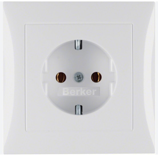 Berker 47428989 SCHUKO Steckdose mit Abdeckplatte (polarweiß, glänzend) Unterputz, 16A / 250V, Steckklemmen nach VDE, einteiligem Erdungsbügel. Passend zu Berker Serien S.1 / B.3 / B.7.