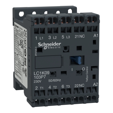 Schneider Electric LC1K09013P7 Leistungsschütz 3-polig mit 3 Schließern + 1 Öffner, Steuerspule 230V AC, Bemessungsstrom AC3 bei 400V: 9A, Motorleistung bis 4kW