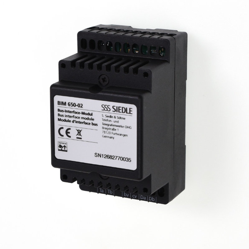 Das Siedle BIM 650-02 Bus-Interface-Modul verbindet den Vario-Bus mit dem In-Home-Bus-System und ermöglicht die Integration verschiedener Siedle Türkommunikationskomponenten. Es dient als Schnittstellenmodul für Türruf- und Steuerfunktionen und erweitert bestehende Anlagen flexibel und zuverlässig.