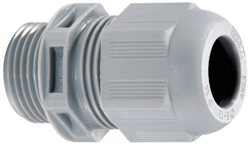 WISKA ESKV63  SPRINT®  Kabelverschraubung aus hochwertigem Polyamid 6.6, metrisches Gewinde M63x1,5, Farbe RAL7001 (silbergrau), halogenfrei, Schutzart IP68, geeignet für den Innen- und Außenbereich, mit kurzem Anschlussgewinde für optimale Abdichtung und Zugentlastung durch spezielles WISKA Lamellensystem mit vergrößerten Kontaktflächen und großem Dichtbereich. Abdichtung zum Gehäuse in den Größen M12 bis M32 durch angespritzte Dichtlippe, Größe M40 bis M63 mit Anschlussgewindedichtring. Alle Dichtungen werden in EPDM ausgeführt und zeichnen sich durch hervorragende Beständigkeit gegen Wasser, Ozon, UV-Strahlung sowie Chemikalien aus. Das selbst hemmende Hutmuttergewinde bietet optimalen Vibrationsschutz und Schutz vor Überdrehen der Hutmutter. Für besondere Anwendungen steht innerhalb des SPRINT®-Systems eine umfangreiche Auswahl an Zubehörteilen zur Verfügung.